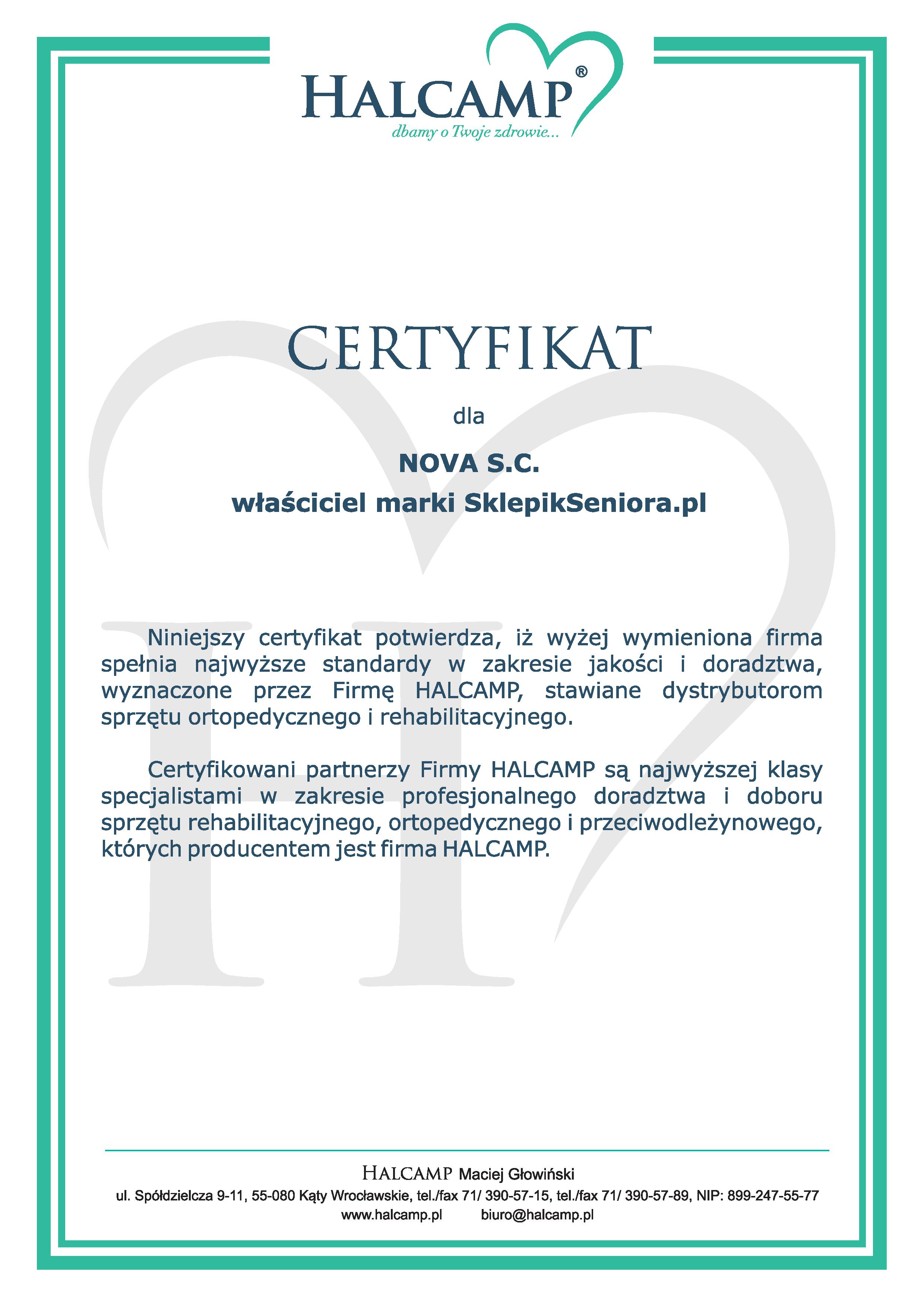 Certyfikat od firmy HALCAMP - producenta wyrobów medycznych