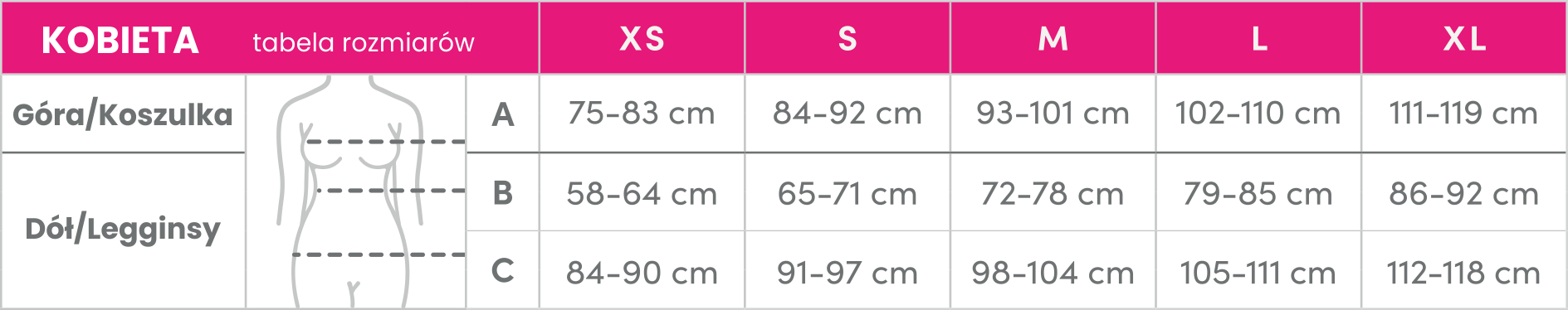 DOSTĘPNE ROZMIARY: S, M, L, XL (tabelka poniżej).