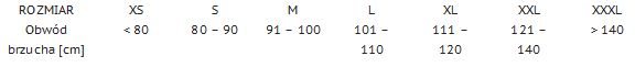 Przed zakupem zaleca się zmierzyć obwód brzucha i dobrać odpowiedni rozmiar pasa według tabeli.