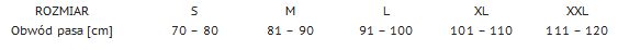 W celu prawidłowego doboru rozmiaru należy zmierzyć obwód pasa w cm i wybrać rozmiar według tabeli poniżej.