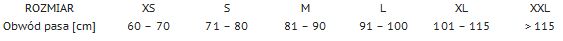 Przed zakupem produktu należy zmierzyć obwód pasa i dobrać odpowiedni rozmiar według tabeli poniżej.