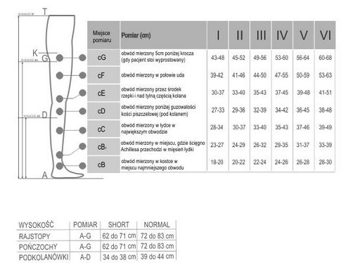 Pomiaru nogi lewej i prawej (w miejscach wskazanych w poniższej tabeli) należy dokonać rano, zaraz po nocnym wypoczynku.